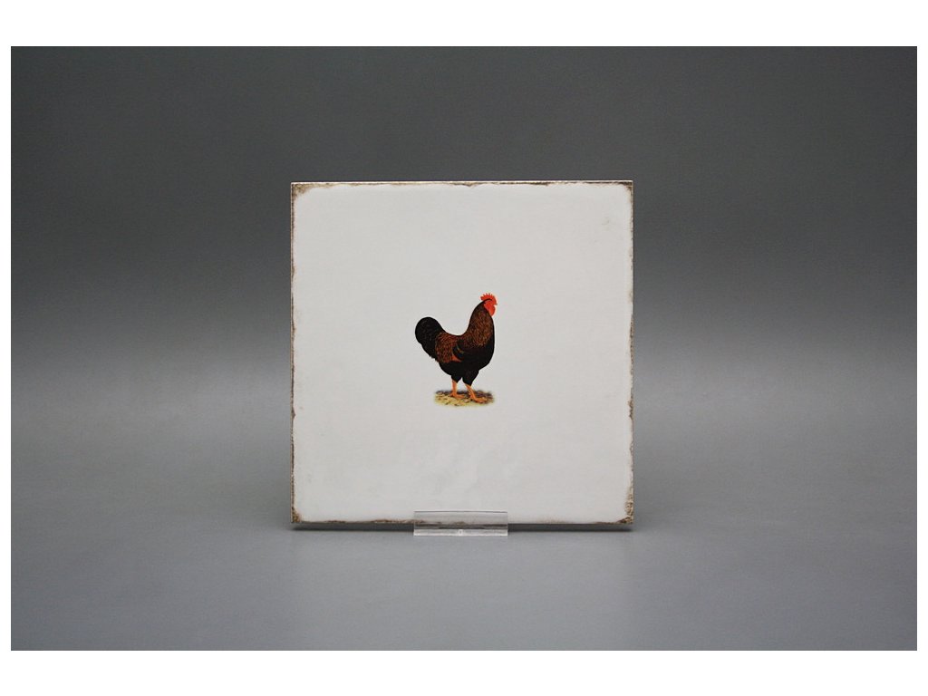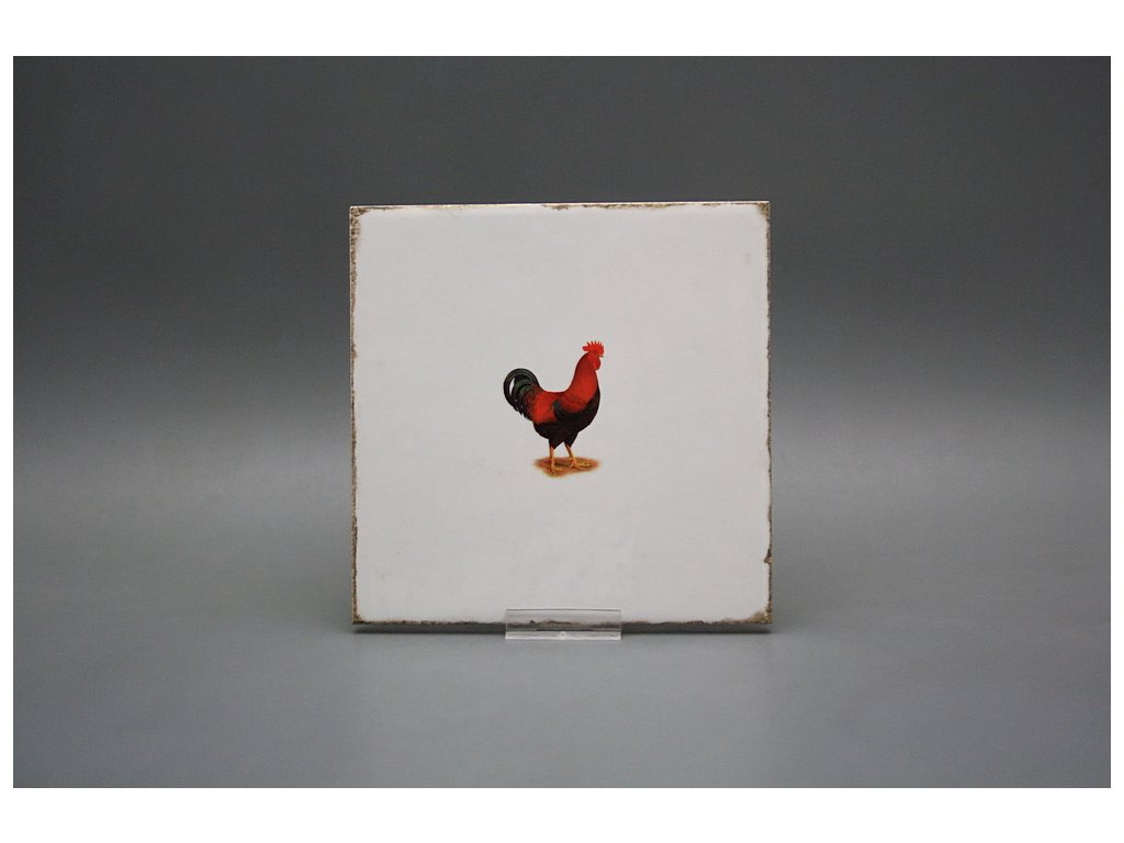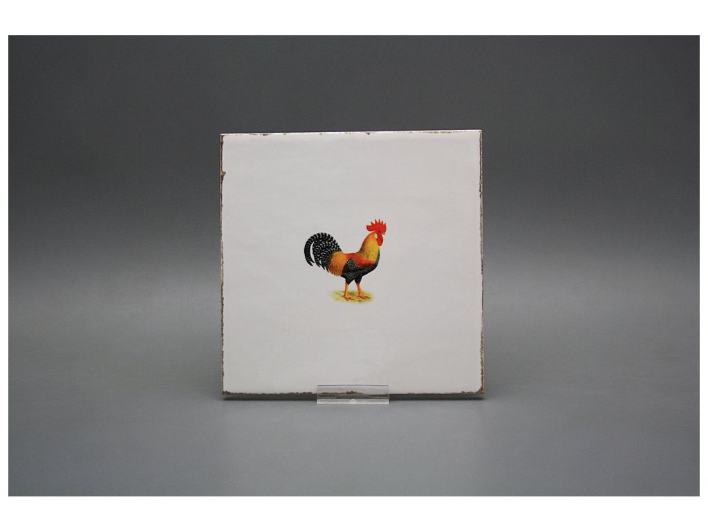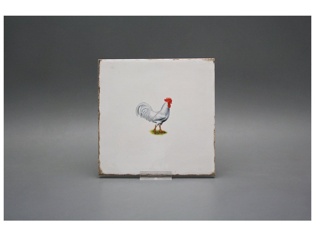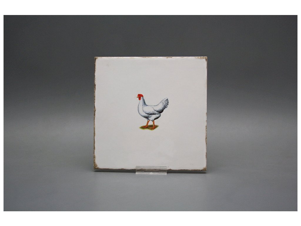 Decorated ceramic tile, 15x15cm, in retro style from the Spanish manufacturer FABRESA. Fired at a temperature of 820°C for a durable, washable finish. FORLI BLANCO ceramic tiles were used for decoration, featuring a glossy, white, aged surface.