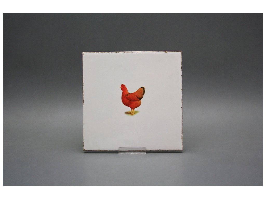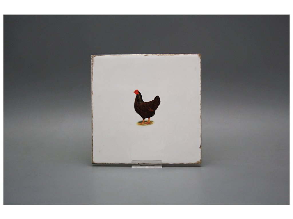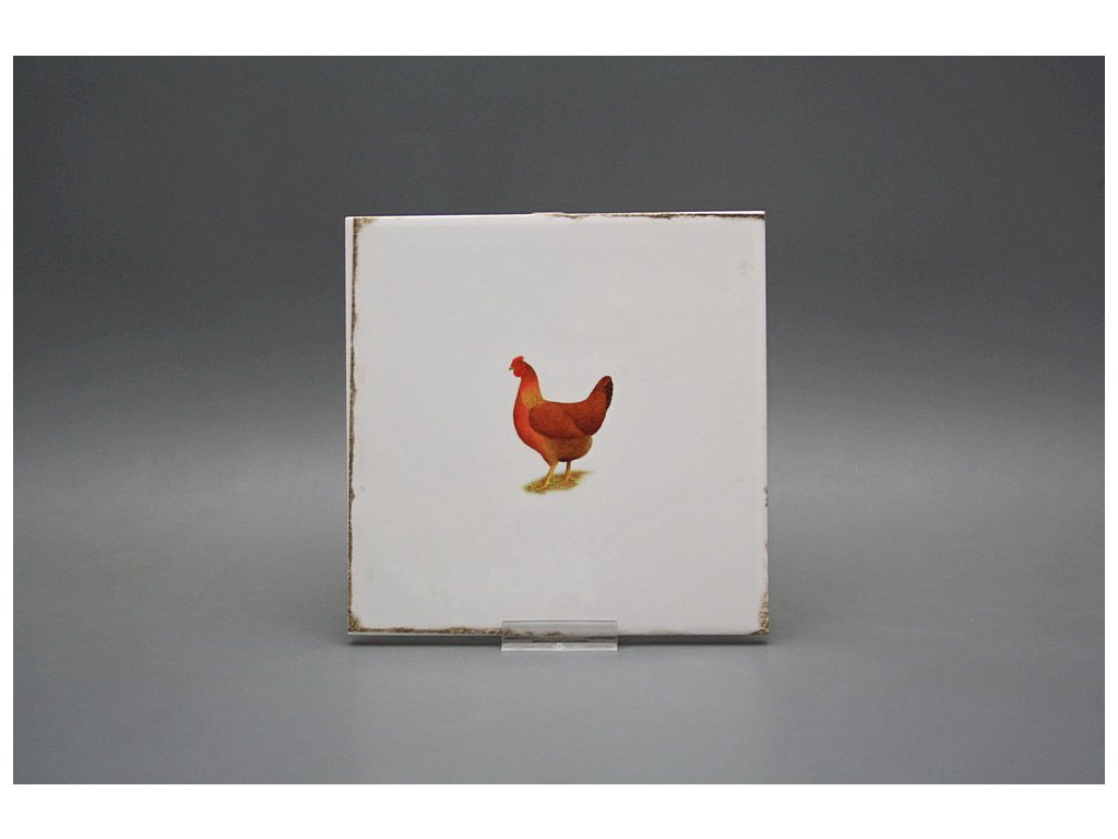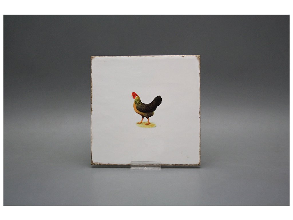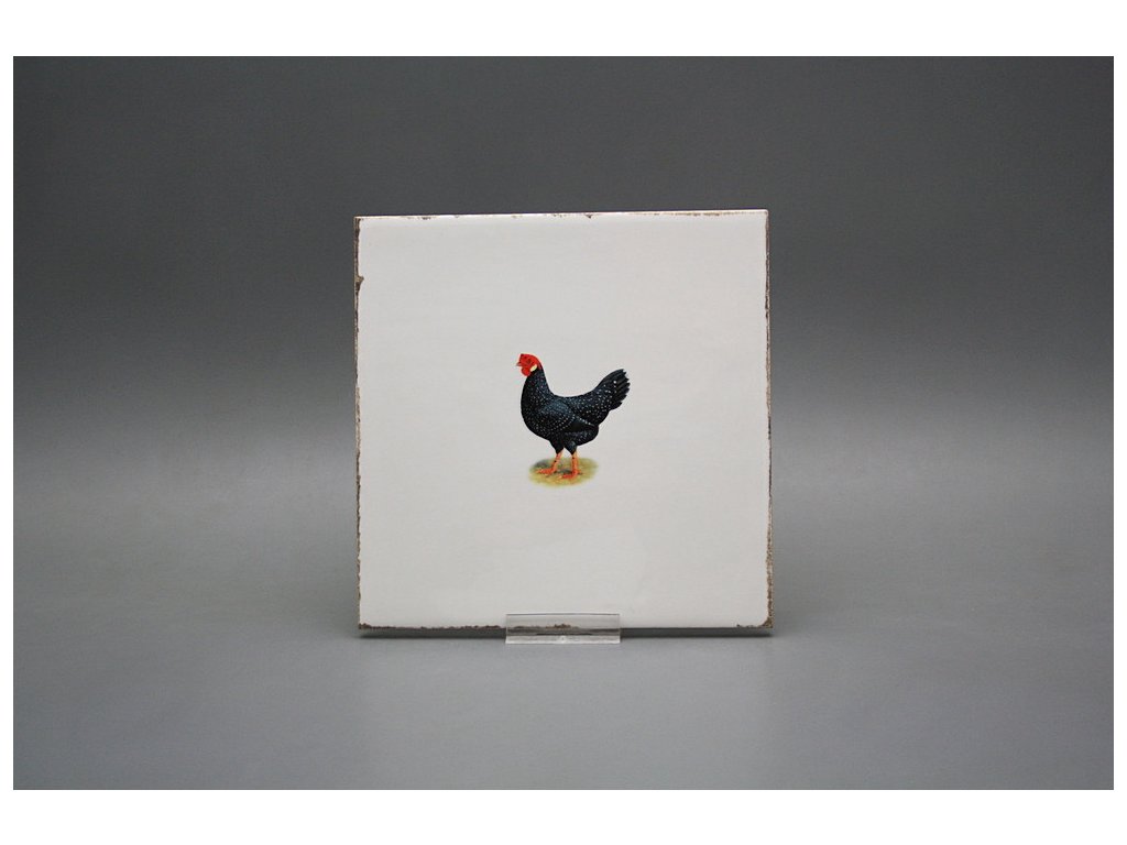 Decorated ceramic tile, 15x15cm, in retro style from the Spanish manufacturer FABRESA. Fired at a temperature of 820°C for a durable, washable finish. FORLI BLANCO ceramic tiles were used for decoration, featuring a glossy, white, aged surface.