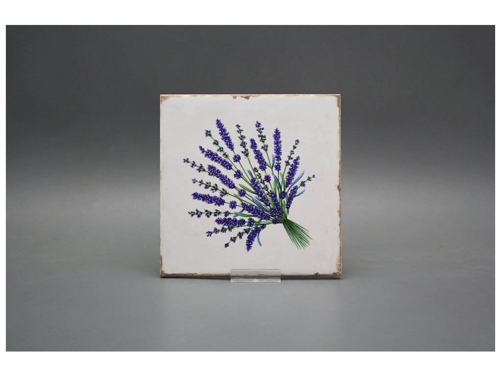 Decorated ceramic tile, 15x15cm, in retro style from the Spanish manufacturer FABRESA. Fired at a temperature of 820°C for a durable, washable finish. FORLI BLANCO ceramic tiles were used for decoration, featuring a glossy, white, aged surface.