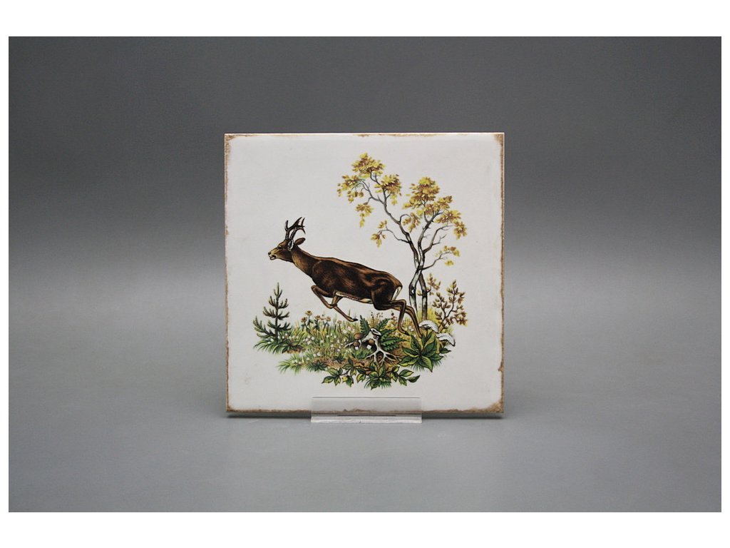 Decorated ceramic tile, 15x15cm, in retro style from the Spanish manufacturer FABRESA. Fired at a temperature of 820°C for a durable, washable finish. FORLI BLANCO ceramic tiles were used for decoration, featuring a glossy, white, aged surface.