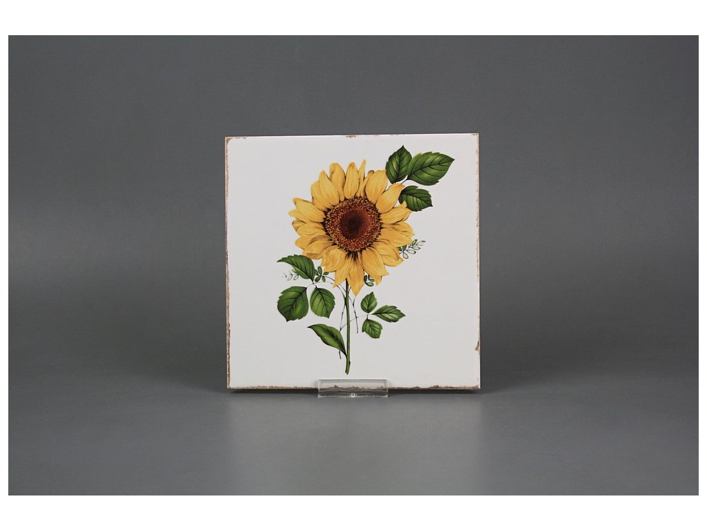 Decorated ceramic tile, 15x15cm, in retro style from the Spanish manufacturer FABRESA. Fired at a temperature of 820°C for a durable, washable finish. FORLI BLANCO ceramic tiles were used for decoration, featuring a glossy, white, aged surface.