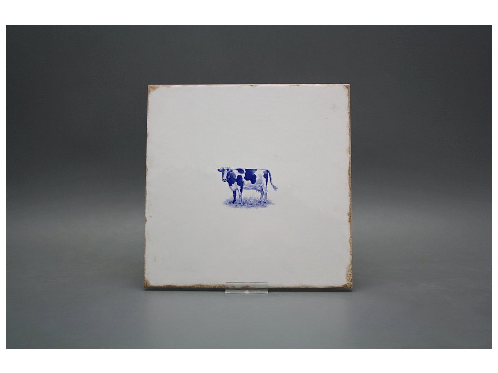 Decorated ceramic tile, 20x20cm, in retro style from the Spanish manufacturer FABRESA. Fired at a temperature of 820°C for a durable, washable finish. FORLI BLANCO ceramic tiles were used for decoration, featuring a glossy, white, aged surface.