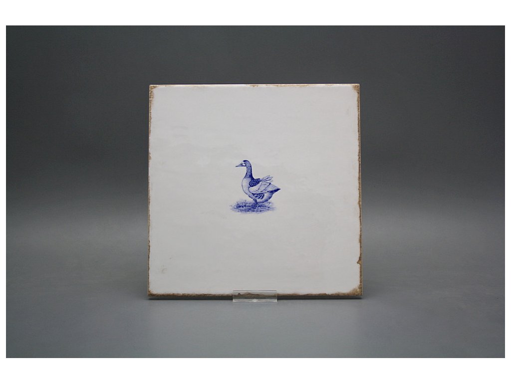 Decorated ceramic tile, 20x20cm, in retro style from the Spanish manufacturer FABRESA. Fired at a temperature of 820°C for a durable, washable finish. FORLI BLANCO ceramic tiles were used for decoration, featuring a glossy, white, aged surface.