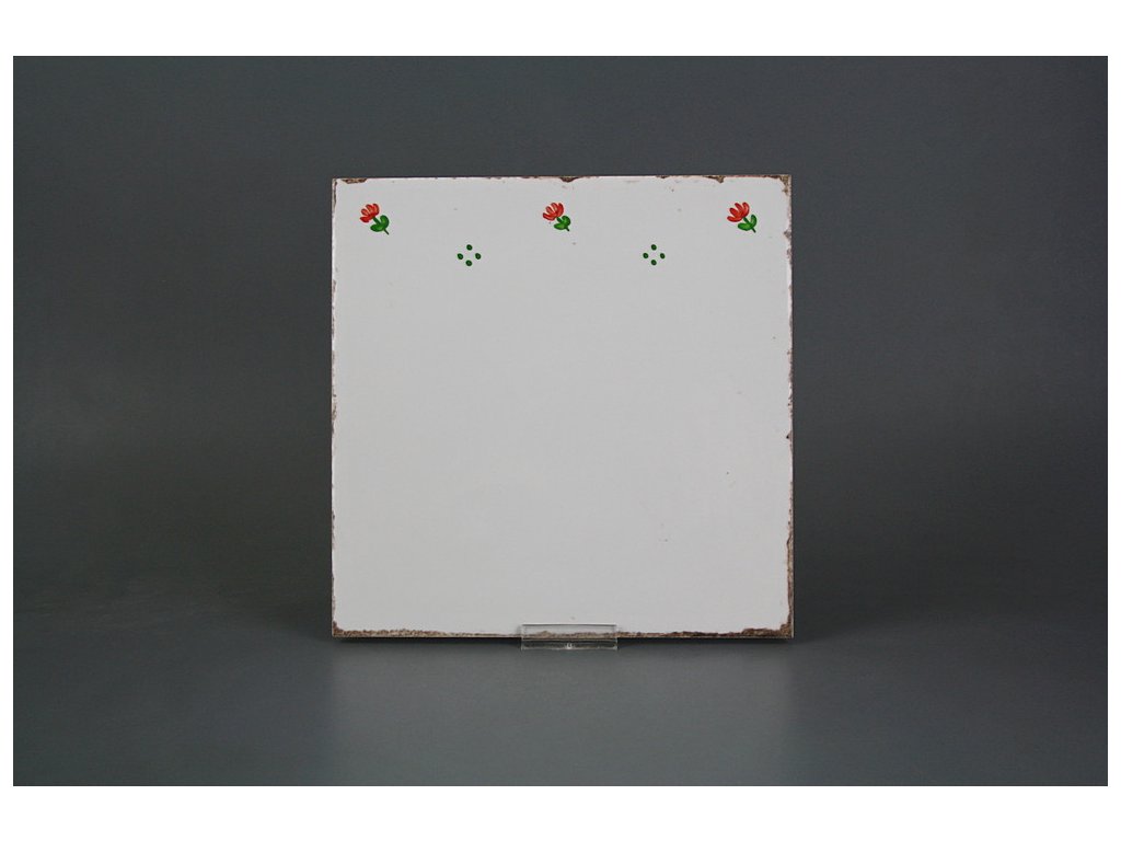 Hand-painted ceramic tile, 20x20cm, in retro style from the Spanish manufacturer FABRESA. Fired at a temperature of 820°C for a durable, washable finish. FORLI BLANCO ceramic tiles were used for decoration, featuring a glossy, white, aged surface.