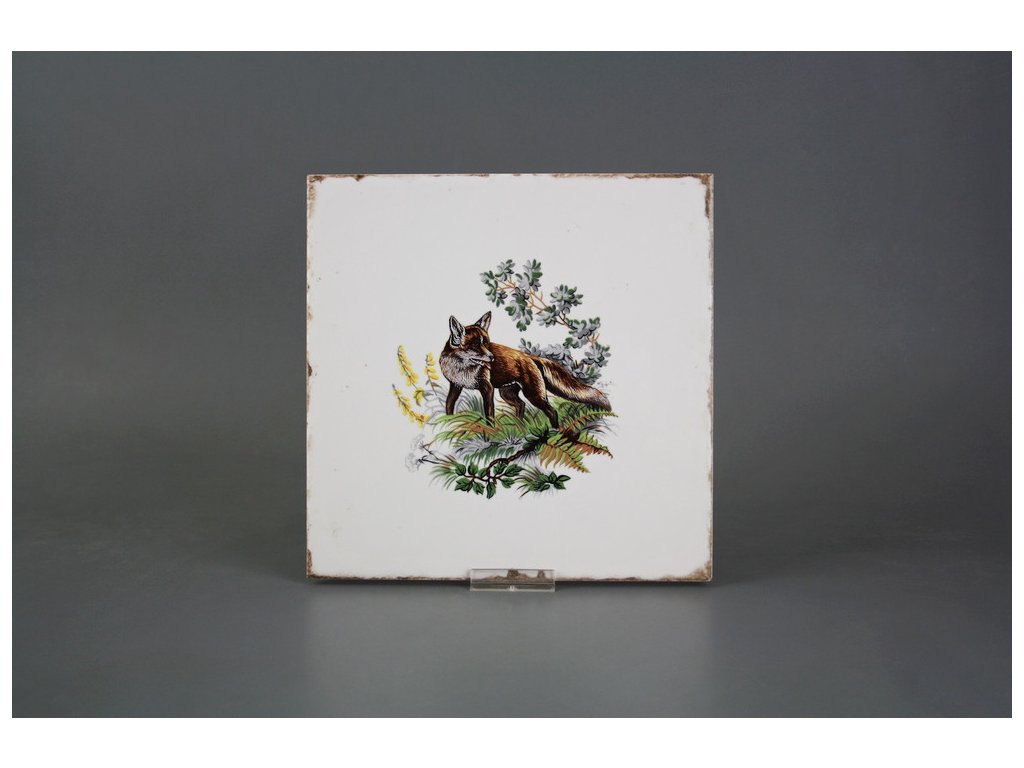 Decorated ceramic tile, 20x20cm, in retro style from the Spanish manufacturer FABRESA. Fired at a temperature of 820°C for a durable, washable finish. FORLI BLANCO ceramic tiles were used for decoration, featuring a glossy, white, aged surface.