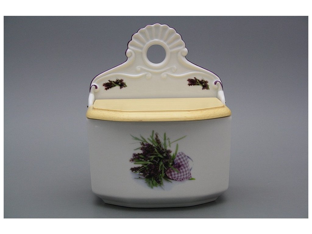 Practical wall box for foodstuffs with wooden cover of high-quality Czech porcelain. Microwave NO! Dishwasher NO!