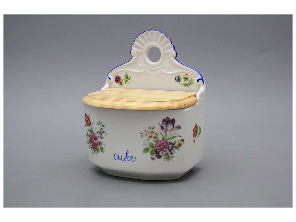 Practical wall box for sugar with wooden cover of high-quality Czech porcelain. Microwave NO! Dishwasher NO!