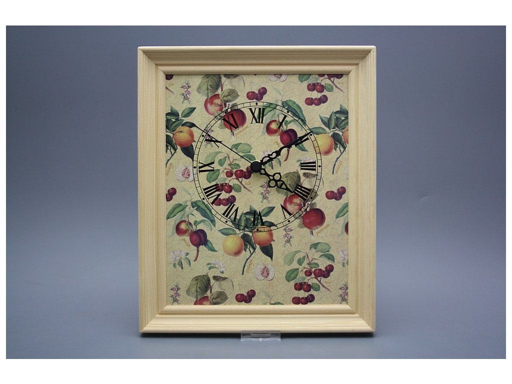 Ceramic wall clock 25x30 cm with wooden frame, Natural (PB) finish. Quartz movement (2-year warranty), batteries included.