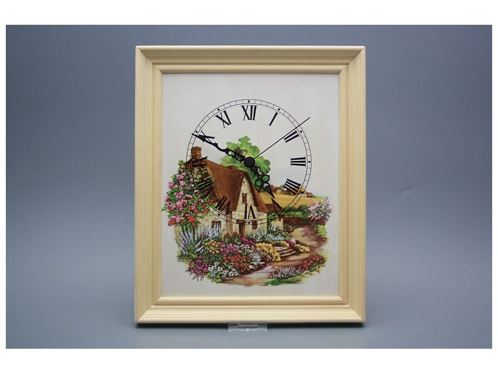 Ceramic wall clock 25x30 cm with wooden frame, Natural (PB) finish. Quartz movement (2-year warranty), batteries included.