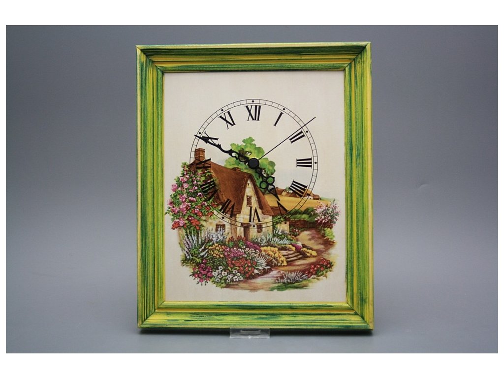 Ceramic wall clock 25x30 cm with wooden frame, Green Mottled (ZM) finish. Quartz clockwork (2-year warranty), batteries included.