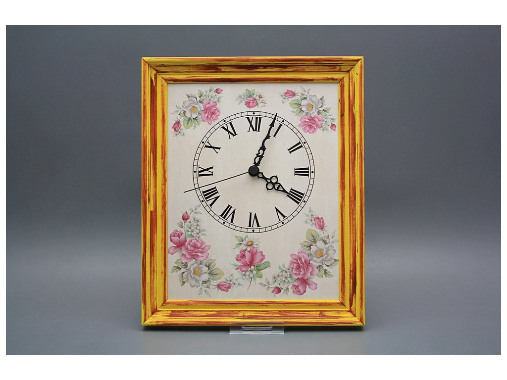 Ceramic wall clock 25x30 cm with wooden frame, Brown Mottled (HM) finish. Quartz clockwork (2-year warranty), batteries included.