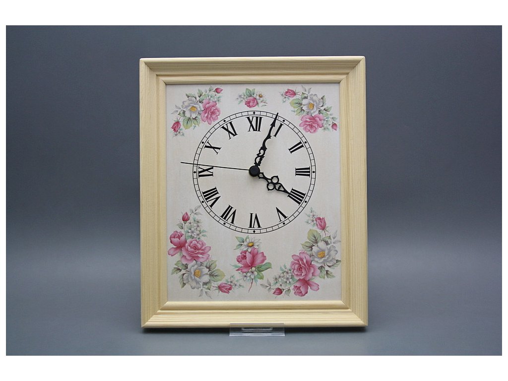 Ceramic wall clock 25x30 cm with wooden frame, Natural (PB) finish. Quartz movement (2-year warranty), batteries included.