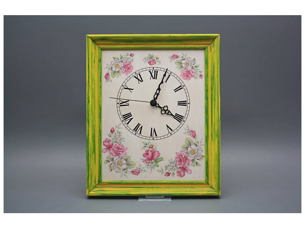 Ceramic wall clock 25x30 cm with wooden frame, Green Mottled (ZM) finish. Quartz clockwork (2-year warranty), batteries included.
