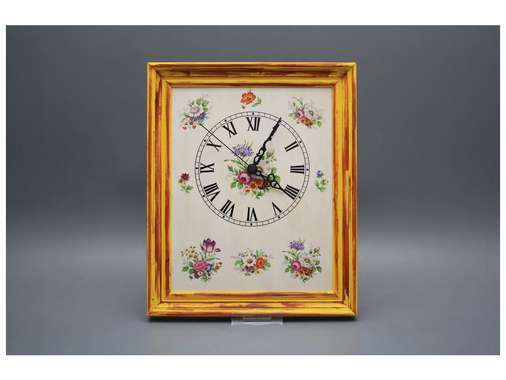Ceramic wall clock 25x30 cm with wooden frame, Brown Mottled (HM) finish. Quartz clockwork (2-year warranty), batteries included.