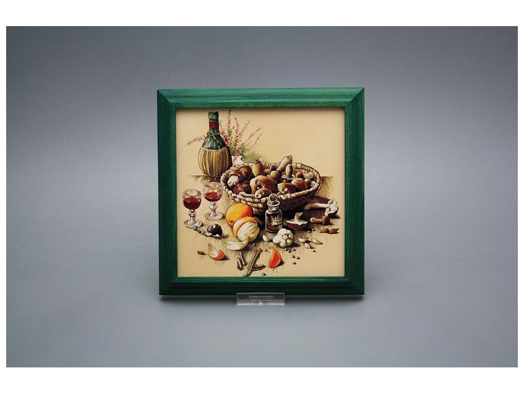Hanging ceramic picture with a green wood frame (ZL). Motif fired at 820°C, ensuring a permanent and washable decor.