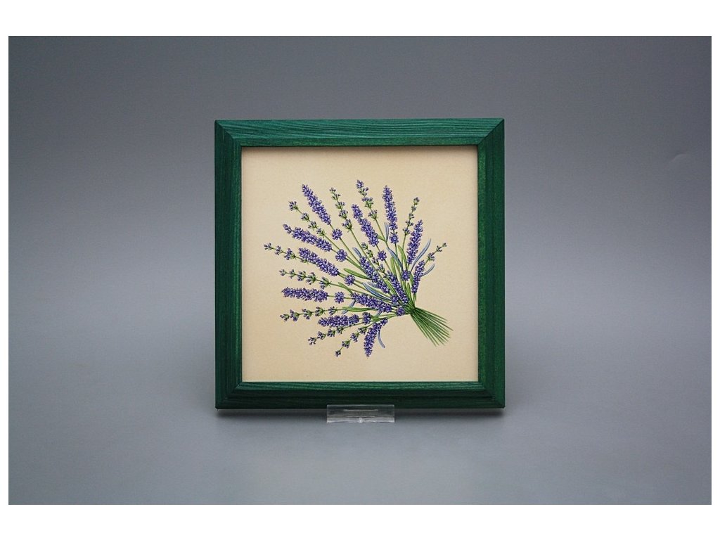 Hanging ceramic picture with a green wood frame (ZL). Motif fired at 820°C, ensuring a permanent and washable decor.