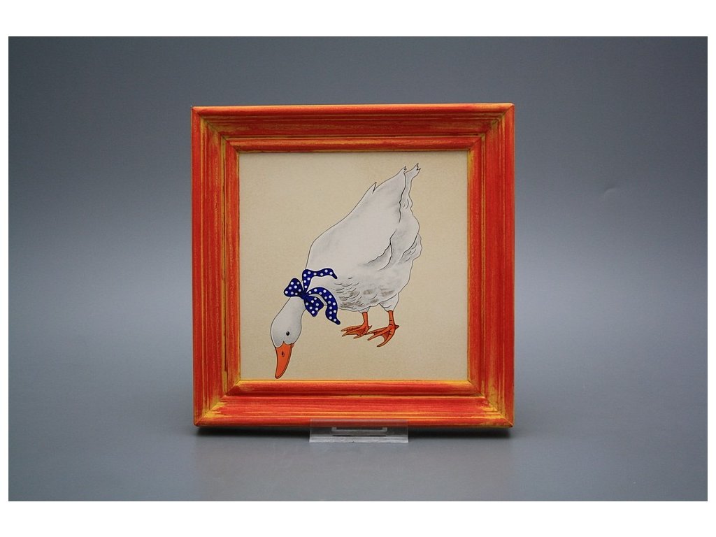 Hanging ceramic picture with a red mottled wood frame (CM). Motif fired at 820°C, ensuring a permanent and washable decor.