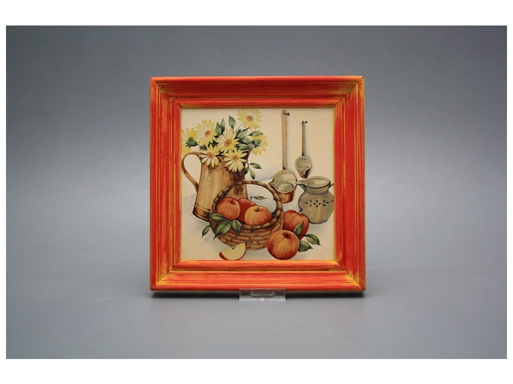 Hanging ceramic picture with a red mottled wood frame (CM). Motif fired at 820°C, ensuring a permanent and washable decor.