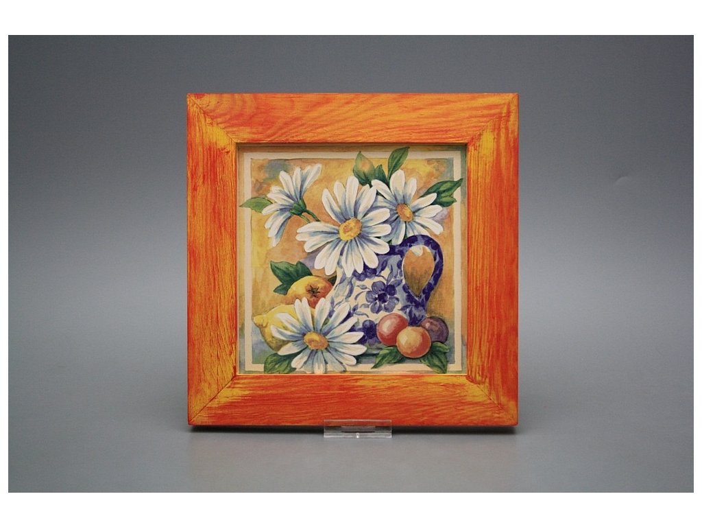 Hanging ceramic picture with a red mottled wood frame (CM). Motif fired at 820°C, ensuring a permanent and washable decor.