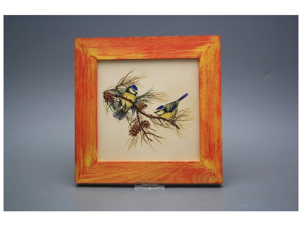 Hanging ceramic picture with a red mottled wood frame (CM). Motif fired at 820°C, ensuring a permanent and washable decor.