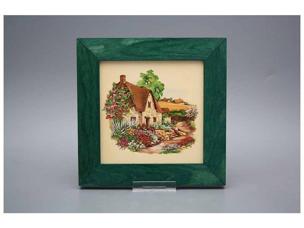Hanging ceramic picture with a green wood frame (ZL). Motif fired at 820°C, ensuring a permanent and washable decor.