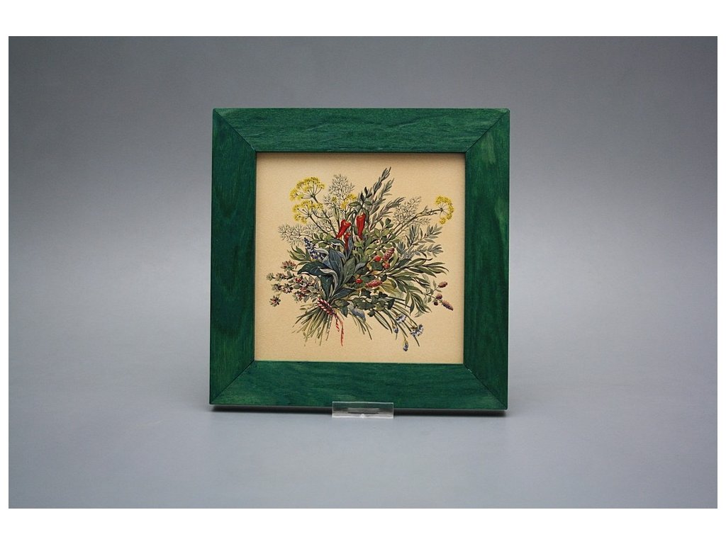 Hanging ceramic picture with a green wood frame (ZL). Motif fired at 820°C, ensuring a permanent and washable decor.