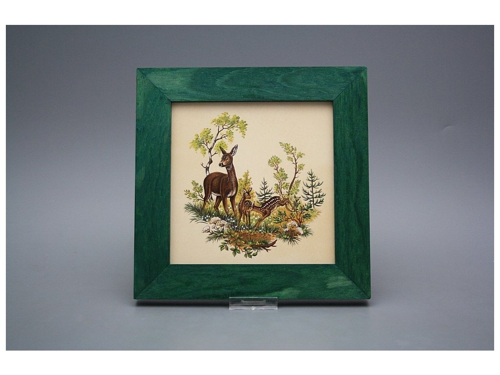 Hanging ceramic picture with a green wood frame (ZL). Motif fired at 820°C, ensuring a permanent and washable decor.