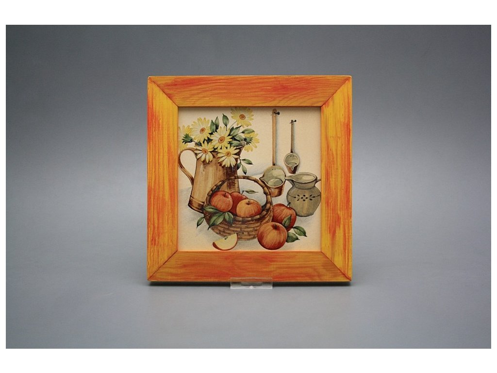 Hanging ceramic picture with a red mottled wood frame (CM). Motif fired at 820°C, ensuring a permanent and washable decor.