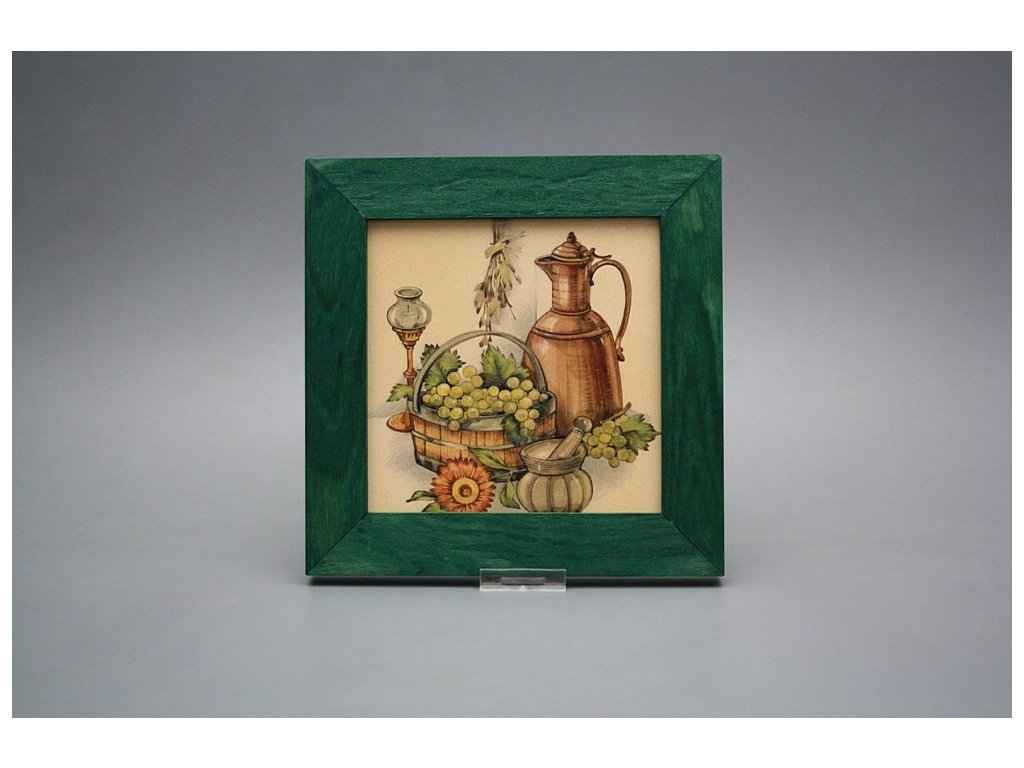Hanging ceramic picture with a green wood frame (ZL). Motif fired at 820°C, ensuring a permanent and washable decor.