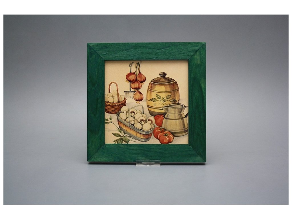 Hanging ceramic picture with a green wood frame (ZL). Motif fired at 820°C, ensuring a permanent and washable decor.