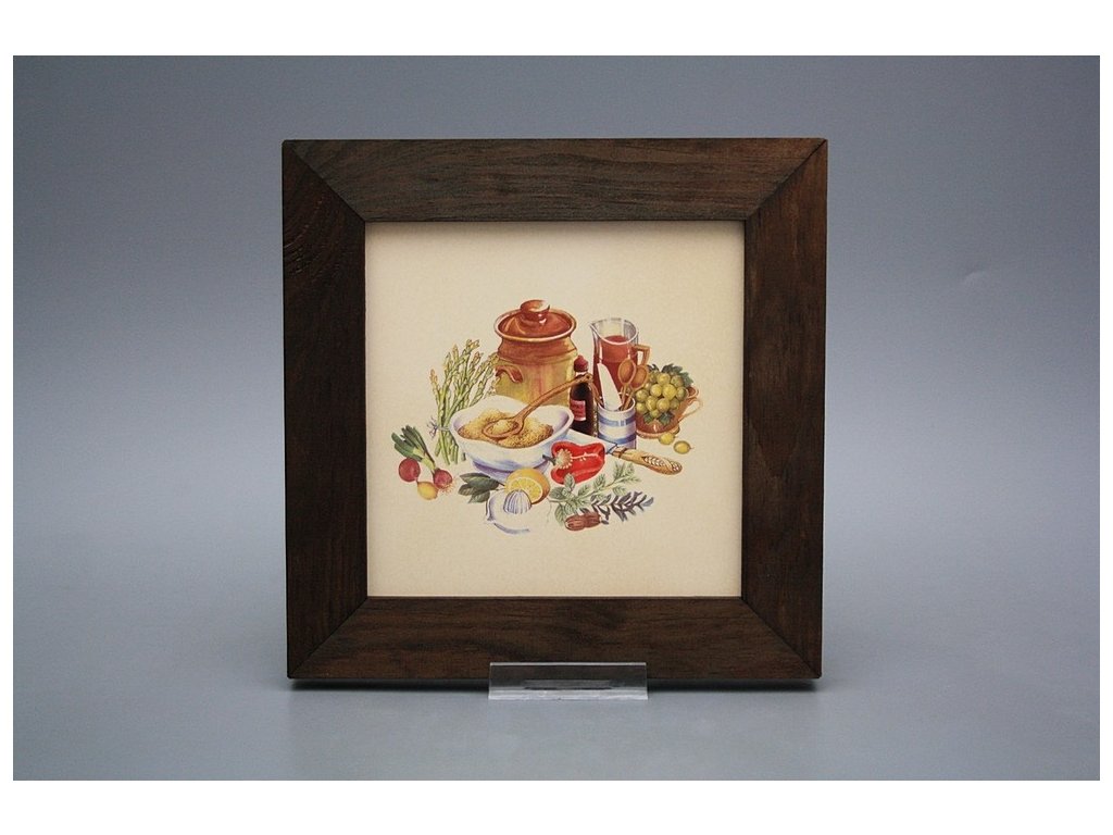 Hanging ceramic picture with a dark brown wood frame (TH). Motif fired at 820°C, ensuring a permanent and washable decor.