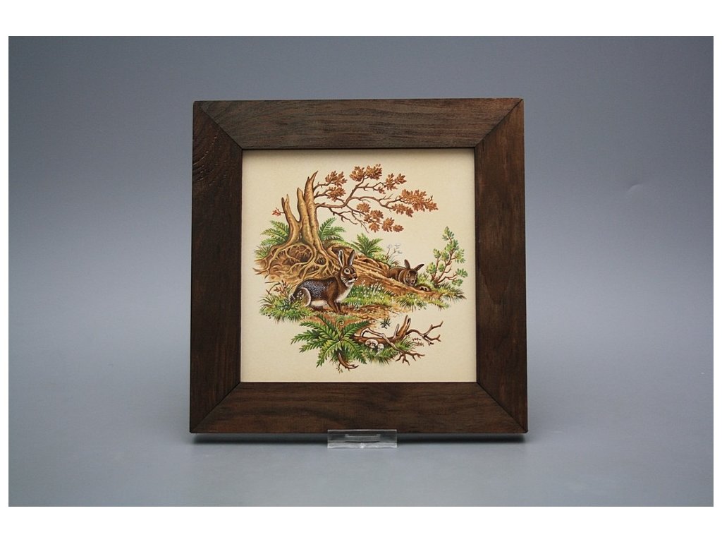 Hanging ceramic picture with a dark brown wood frame (TH). Motif fired at 820°C, ensuring a permanent and washable decor.
