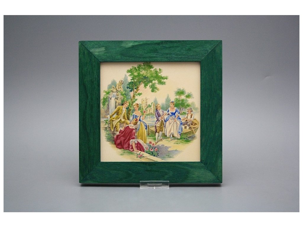 Hanging ceramic picture with a green wood frame (ZL). Motif fired at 820°C, ensuring a permanent and washable decor.