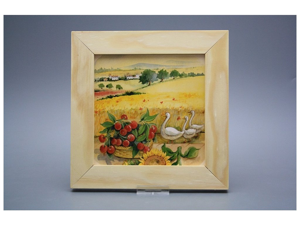 Hanging ceramic picture with a natural wood frame (no patina, PB). Motif fired at 820°C, ensuring a permanent and washable decor.