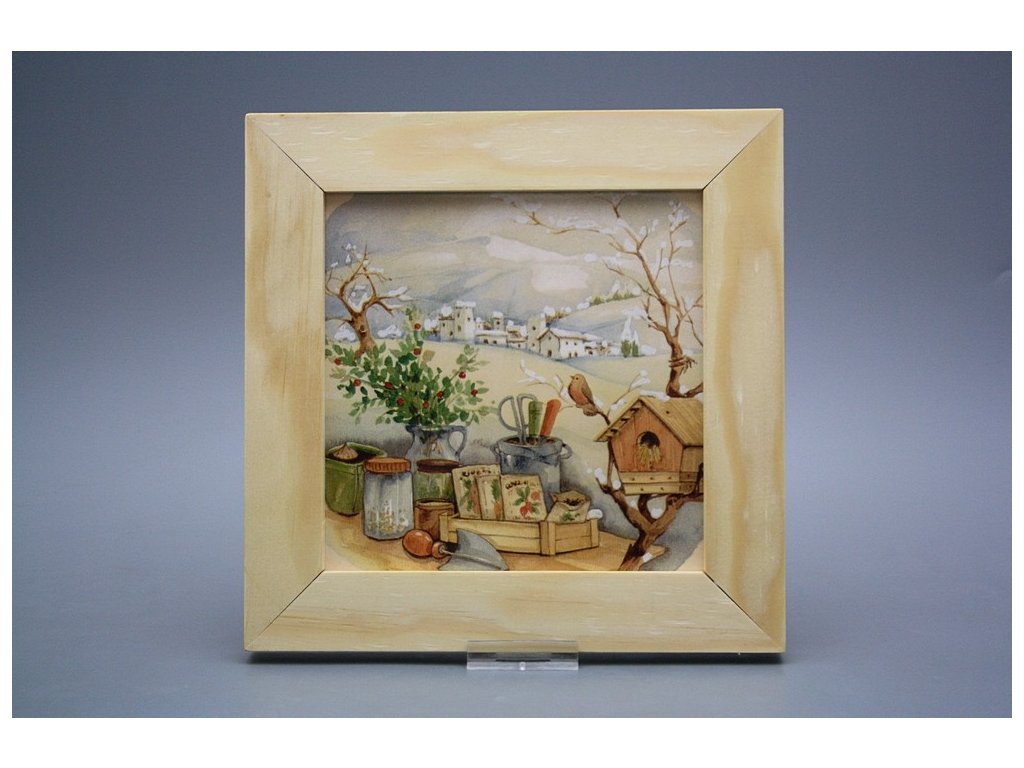 Hanging ceramic picture with a natural wood frame (no patina, PB). Motif fired at 820°C, ensuring a permanent and washable decor.