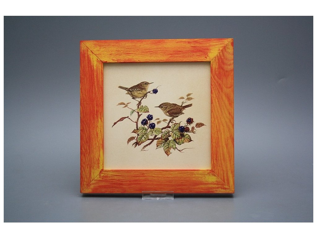Hanging ceramic picture with a red mottled wood frame (CM). Motif fired at 820°C, ensuring a permanent and washable decor.